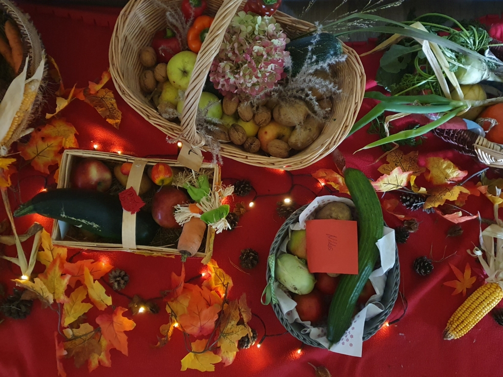 Auch in diesem Jahr waren die ErnteDank Körbchen wieder sehr gefüllt. Vielen Dank liebe Eltern!