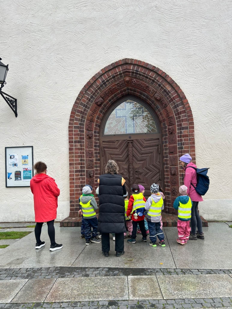 Im Oktober 2025 besuchte die Eulengruppe die Paul-Gerhardt-Kirche in Lübben. Die Kinder machten sich zu Fuß auf den Weg zur Kirche und wurden von einer Mitarbeiterin in Empfang genommen. Ein kleines Bilderquiz musste gelöst werden, ein Lied wurde gesungen und viele Fragen wurden gestellt und beantwortet. Wir bedanken uns bei der Mitarbeiterin der Kirche sowie der Begleitung durch ein Elternteil.